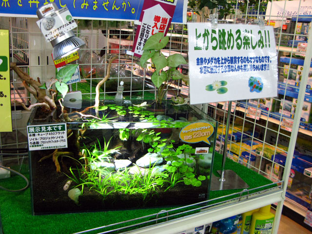 「上から眺める楽しみ!」をテーマに背の低い水槽でASPの提案を行いました。